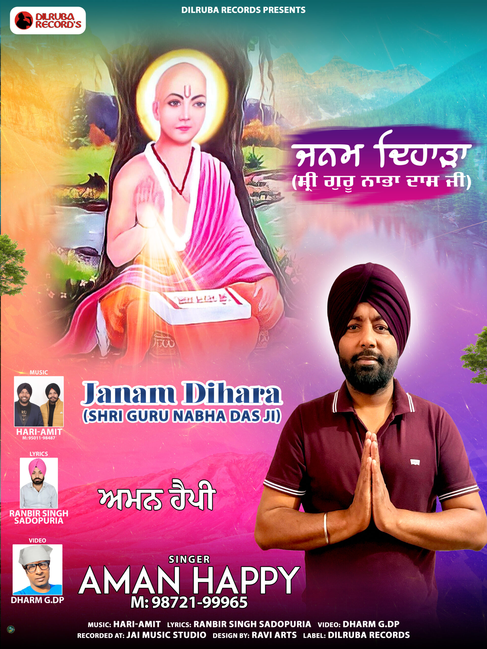 ਸ੍ਰੀ ਗੁਰੂ ਨਾਭਾ ਦਾਸ ਜੀ ਦੇ ਜਨਮ ਦਿਹਾੜੇ ਮੌਕੇ ਧਾਰਮਿਕ ਗੀਤ ਨਾਲ ਹਾਜ਼ਰ ਹੋਇਆ ਗਾਇਕ ਅਮਨ ਹੈਪੀ