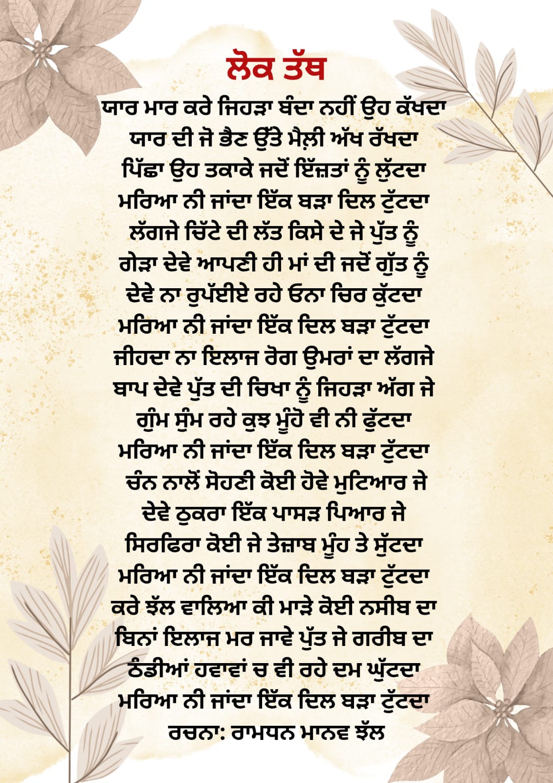 ਰਚਨਾ: ਰਾਮਧਨ ਮਾਨਵ ਝੱਲ